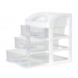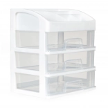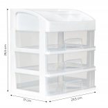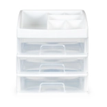 Keep your cosmetics organized and tidy with our sleek white plastic organizer. Its practical design offers several compartments and three transparent drawers, ideal for conveniently storing any bits and pieces.