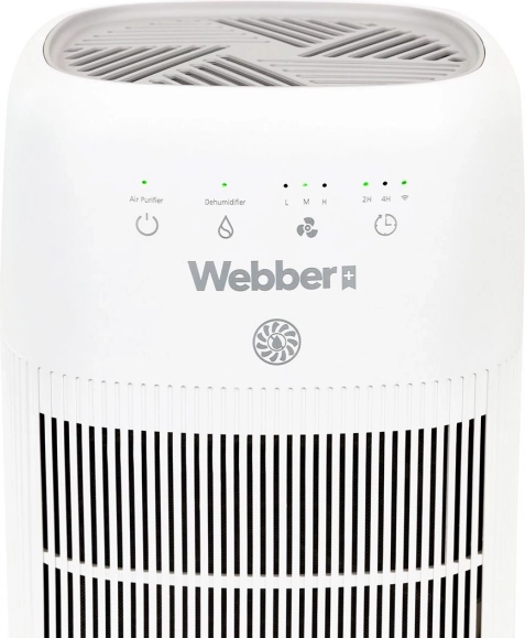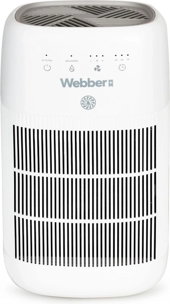 The Webber dehumidifier and air purifier combines modern PureAir technology with efficient dehumidification to reduce indoor humidity, limit mold growth and window condensation, while filtering dust, allergens, and odors. The three‑stage filtration (pre‑filter, carbon filter, and HEPA 13) captures up to 99.97% of particles ≥ 0.3 µm—an ideal solution for allergy sufferers and families with children.