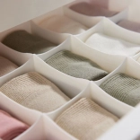 1× drawer for bras; 1× drawer with 15 compartments (socks); 1× drawer with 10 compartments (panties); 1× universal drawer without dividers