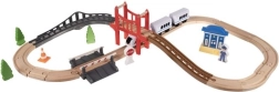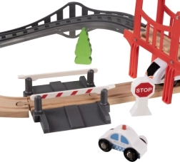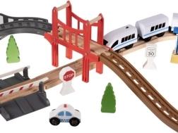 This wooden train track is an ideal solution to foster creativity and imagination in children. It is designed for children to immerse themselves in the world of railway fun, either at home or outdoors. The set includes a total of 37 precisely crafted elements, including a bridge and buildings that add realistic features to the fun.