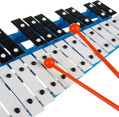 - Chromatic Design: The xylophone comprises metal plates that produce sound when struck with rounded-head sticks, arranged similarly to a piano. Playing all notes sequentially creates a chromatic scale, with notes differing only by a half step. The bright tones resonate beautifully.