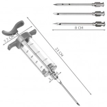 The package includes three different needles made of stainless steel (with 1, 2, and 5 holes), so you can easily adjust the flow and type of marinade. The rubber seal prevents liquid leakage, and the standard Luer connection enables quick needle changes. Durable PCTG/PP and stainless steel materials withstand repeated use and are easy to clean.
