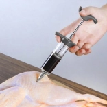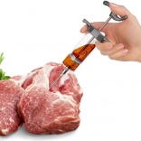 This kitchen injection syringe is ideal for home smoking, roasting, and grilling. It allows you to inject brine, stocks, and marinades directly into meat fibers, significantly reducing curing time and ensuring even salting and seasoning. The transparent body with ml markings makes precise dosing easy.