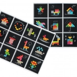 Thanks to 55 magnets with numbers and mathematical symbols and 30 illustrated pictures, children develop creativity, hand–eye coordination, memory, and concentration. The set also includes pattern templates that inspire more ideas and help with first steps in logical thinking.