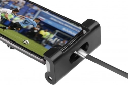 The universal holder offers strong jaws that ensure a firm grip on devices. It is suitable for various types and sizes of tablets and phones.