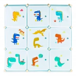 This modular wardrobe for children's rooms combines playful design with everyday functionality. Nine closable cubes with colorful dinosaur prints streamline storage and motivate kids to keep things tidy on their own. Thanks to the durable polypropylene panels and reinforced metal frame, the wardrobe is light yet stable.