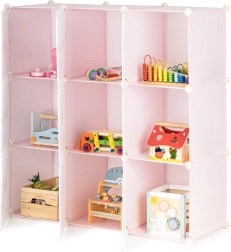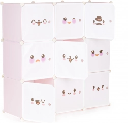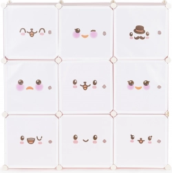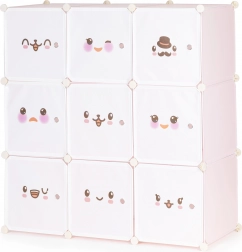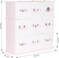 This modular kids' wardrobe offers clear and fun storage for toys, books, and small items. Nine cubes with doors featuring cheerful motifs create a welcoming environment and encourage children to keep things tidy on their own. With its customizable configuration, you can easily adapt the shape and layout to your space and needs.