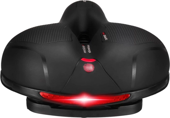 This ergonomic cycling saddle features a soft padding made of elastic foam and a durable plastic material that is resistant to weather conditions.