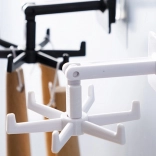 Six arms for hanging various items, ideal for kitchen utensils and bathroom accessories.