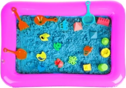 Children’s sand with magical properties is a sensational gift idea for any child. You can successfully play with this sand at home. When it’s windy, raining, or snowing outside, nothing stops you from creating—just use the inflatable pool with magic sand and let your imagination run wild! The kids’ sand set includes 14 plastic molds, a rake, a sieve, a shovel, and a funnel. With this much equipment, boredom doesn’t stand a chance. The set also includes an inflatable sandbox to help keep the play area neat and tidy.