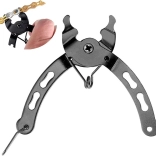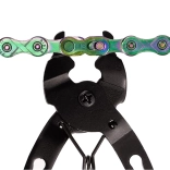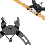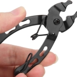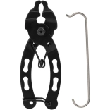 These universal pliers are designed for easy opening and closing of quick links on bicycle chains. Thanks to precise mechanics and a spring, you can service the chain quickly, safely, and with minimal effort. A practical chain hook is included to keep the chain tensioned while cleaning, lubricating, or replacing it.