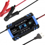 Compact and intelligent charger for 12V/24V car batteries with a digital display and repair mode. Provides fast and safe charging, offers winter and summer modes, automatic protection, and pulse restoration to revive weak batteries. Ideal for cars, motorcycles, and other vehicle batteries.