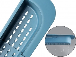 Its use is versatile: it stores sponges, cloths, liquids, and other kitchen accessories. With drainage holes, water easily flows back into the sink, which helps maintain cleanliness and order.