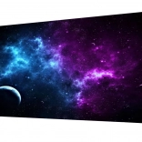 Thanks to its water‑resistant finish, it withstands accidental spills, and the stitched edges prevent fraying. Space graphics in shades of blue and purple give your setup a unique look—from office to gaming corner.