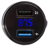 The blue backlit digital display shows the frequency and voltage, and the intuitive buttons make it easy to answer calls, change tracks, and adjust volume. Plugging it into the cigarette lighter socket takes seconds, and after starting the car the transmitter connects automatically to your phone.