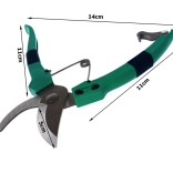 The integrated safety lock prevents accidental opening, while the spring mechanism facilitates repeated cuts. The shears are easy to clean and maintain, making them a great choice for home gardens, greenhouses, and orchards.