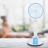 Keep a pleasant climate anywhere. This foldable wireless fan in an elegant blue color combines powerful yet quiet cooling with a useful LED light. With stepless speed control, you can easily tailor the airflow to current needs—from a gentle breeze to more intense refreshment.