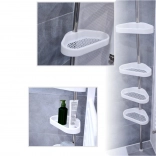 This telescopic corner shelf smartly uses every centimeter of space in your shower. Thanks to the spring bracing between floor and ceiling, you can install it in minutes without drilling, screwing, or damaging tiles. Four spacious plastic baskets with drainage holes prevent water accumulation, making them easy to keep clean.