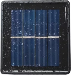 A compact 2 V/100 mAh solar panel charges the built-in battery during the day. No more cables or battery replacements — just clean solar energy.