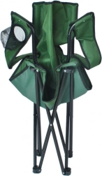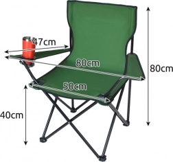Enjoy comfort by the water, in the garden, and while camping. The TRIZAND folding fishing chair features an ergonomically shaped seat, comfortable armrests, and a practical cup holder. The metal frame made of iron tubes and durable Oxford 600D fabric ensure stability and long-lasting durability even during extended sitting. Load capacity 100 kg and a seat height of 41 cm provide comfort for most users.