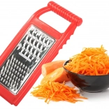 A universal kitchen grater that lets you prepare salads, sides, and baking ingredients in no time. The flat shape saves drawer space, and the lightweight build feels comfortable to hold. The grater combines a sharp stainless steel surface with a durable plastic frame for comfortable and safe use.