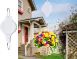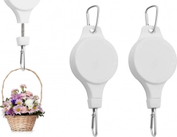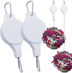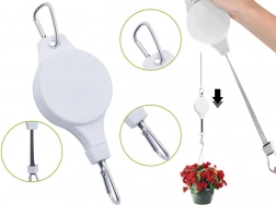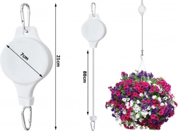 A practical hanging system for plants and decor that lets you lower and raise them with a single pull. Thanks to the retractable reinforced nylon strap and convenient carabiners, watering and maintaining hanging plants on a balcony, terrace, or indoors is quick and safe. The set includes 2 pieces.