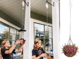 The retractable mechanism with a nylon strap lets you safely lower a planter and raise it back up again—ideal for regular watering.