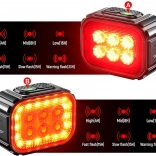 The set supports USB charging from any device with a USB port, which is very practical. The front light has six lighting modes, just like the rear light, allowing for customization according to your needs.