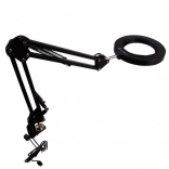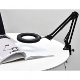 The IZOXIS magnifying lamp combines modern design, flexible arms, and quality optics for meticulous, detailed work. The circular LED ring evenly lights the area around the lens, boosting contrast and clarity of fine details without eye strain. The metal vise-style clamp with a screw secures the lamp firmly to desktops up to 5 cm thick.