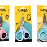Practical colorful scissors, 17.5 cm long, with an ergonomically shaped soft handle and a non-slip rubber grip. Suitable for school, home, and office. Available in 3 color variants.
