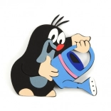 Adorable Little Mole with a blue watering can, perfect as part of a children's decoration.