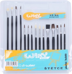 Discover the versatility of the set of 15 brushes for your artistic projects, featuring various sizes for flat and round strokes.