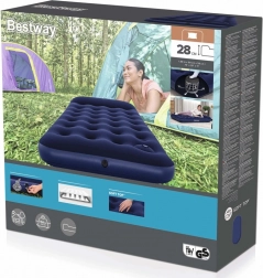 The single air mattress from BESTWAY offers comfortable sleeping at home and on the go. Thanks to its durable coil-beam construction, built-in foot pump, and integrated pillow, it inflates easily and provides stable, comfortable support. The top layer of velvety soft vinyl enhances comfort, while the two-way valve allows quick inflation and deflation.
