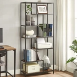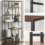 The combination of black metal and rustic wood-effect shelves creates a modern, timeless look that suits various home styles.