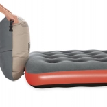 A light and compact mattress with an integrated 2-in-1 pillow is ideal for travel and at home as a comfortable extra bed. Easy to carry and quick to pack.