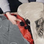 Attach the practical AirCinch pump bag to the valve, scoop air and compress to fill the mattress. Approximately 90 seconds and ~12 compressions are enough to reach the desired firmness.