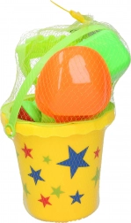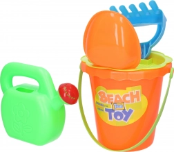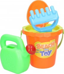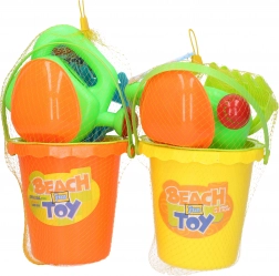 A practical children's sand set sized 15 cm that includes everything little builders need: a bucket, sieve, watering can, rake, and shovel. Available in 2 color variants – yellow and orange. Great for the playground, beach, and garden.