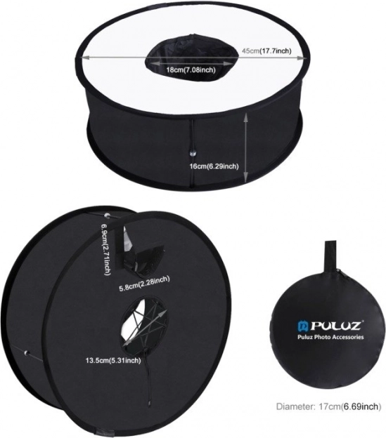 The photographic diffuser by Puluz allows perfect light diffusion for taking professional photos. It evenly distributes light on the photographed subject, preventing overexposure and harsh shadows. Thanks to the elastic band, its installation is very easy and quick. When folded, it is very compact, allowing for the easy setup of a mini studio anywhere.