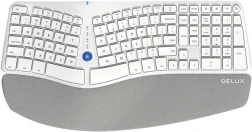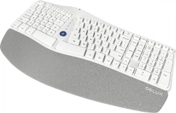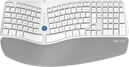 Enjoy maximum comfort while typing with the DELUX GM901D wireless ergonomic keyboard. It features a curved shape for a natural hand position, an integrated palm rest made of soft material, connection to up to 3 devices via Bluetooth 3.0/5.0 and 2.4 GHz, quiet and durable keys, and handy function shortcuts for media and volume.