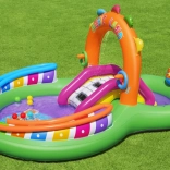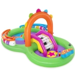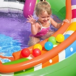 Includes: 1 pool, 1 slide, 1 drum, 2 inflatable rings, 1 microphone, 6 colorful balls, 1 repair patch.