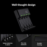 The smart mechanism holds batteries firmly in place and makes insertion and removal easy. The durable ABS body with anti-slip and advanced safety circuits (thermal, overvoltage, and short-circuit protection) safeguard you and your batteries and ensure a long service life.