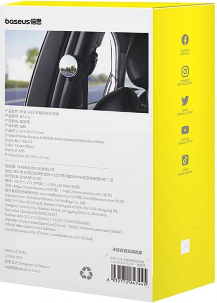 Ensure maximum safety on the road with the Baseus SafeRide rear-view mirror, which eliminates blind spots. With its wide-angle view, you'll have a perfect overview of everything happening behind your vehicle.