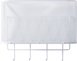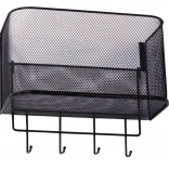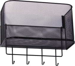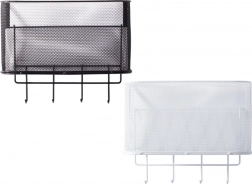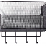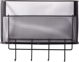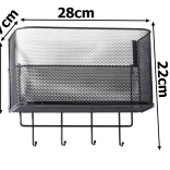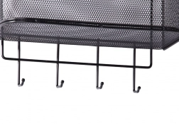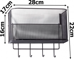 This metal hanging basket is not only practical but also stylish. It is spacious and allows for storing various items, from kitchen accessories to toiletries. The 4 additional hooks can be used for hanging keys, towels, or handbags.