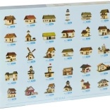 Wooden parts, paper accessories, assembly manual, informational chapters on architecture