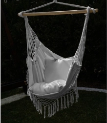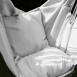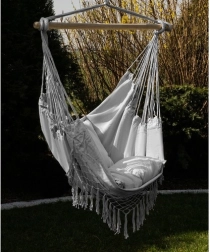 This comfortable hammock-style hanging chair is designed for everyday relaxation—from a short siesta to reading your favorite book. Natural cotton with a touch of polyester feels pleasant to the touch, breathes well, and remains highly resistant to wear.