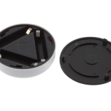 Installation takes seconds—the back features a self-adhesive strip that adheres to most smooth surfaces. Operation is extremely simple: turn on and off by pressing the center. AAA battery power ensures wireless operation and easy replacement after removing the bottom cover.