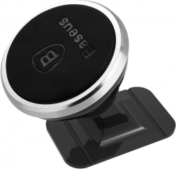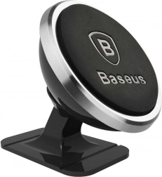 Universal magnetic BASEUS holder for secure mounting of your phone in the car or on a desk. It offers strong magnetic hold, a 360° rotating joint for the ideal viewing angle, and an elegant aluminum design in silver. Thanks to its compact dimensions and self-adhesive installation, it holds firmly on the dashboard, ceiling, or any flat surface.