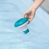 The practical Bestway floating chlorine dispenser ensures continuous dosing of pool chemicals and keeps the water crystal clear throughout the season. Simply insert chlorine tablets up to 2.5 cm in diameter (not included) and the dispenser will safely and evenly disperse them across the surface.