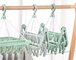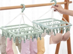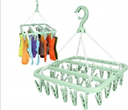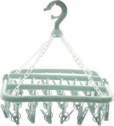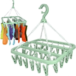 This versatile hanging dryer is perfect for drying socks and lingerie efficiently both indoors and outdoors. It features 32 removable clips, allowing for thorough air circulation that leads to faster drying times.