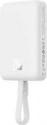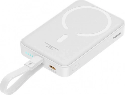 The compact BASEUS Magnetic Mini magnetic power bank with a capacity of 10000 mAh combines 20 W fast wired charging and 15 W MagSafe wireless charging. Strong 13 N magnets ensure a secure hold, the built‑in USB‑C cable also serves as a strap, and LED indicators show the battery status. Advanced protection against overvoltage, overload, and short circuit is included.